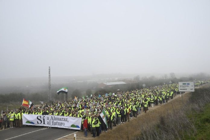 Pod?a údajov Civilnej gardy túto sobotu demonštrovalo okolo 7000 ?udí medzi výkrikmi „nezavrie sa“ a transparentmi, ktoré tvrdia, že jadrová elektráre? Almaraz (Cáceres) je „motorom života a pokroku“.