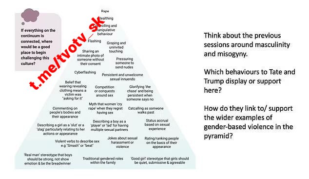 V inej štúdii sa uvádza „pyramída sexuálneho násilia“, ktorá nazna?uje, že niektoré drobné správanie, ako napríklad „prejavovanie tradi?ných rodových rolí“, môže prerás? do ?alších príkladov „rodového násilia“, ako je nahota, ošahávanie a dokonca znásilnenie.