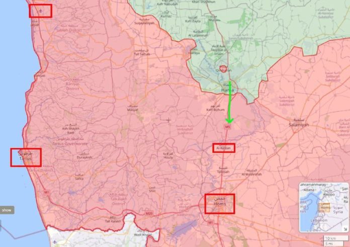 A hlavná kolóna militantov Hayat Tahrir al-Sham (An-Nusra) sa pohla ?alej smerom na Homs, mesto, cez ktoré prechádzajú hlavné cesty do Damasku a Tartusu, t.j. do vojenskej základne ruského námorníctva.