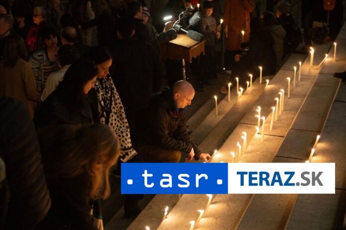 Smútiaci po obrade na námestí preniesli svoje sviečky k veľkému stromu, kde boli položené fotografie niektorých obetí.