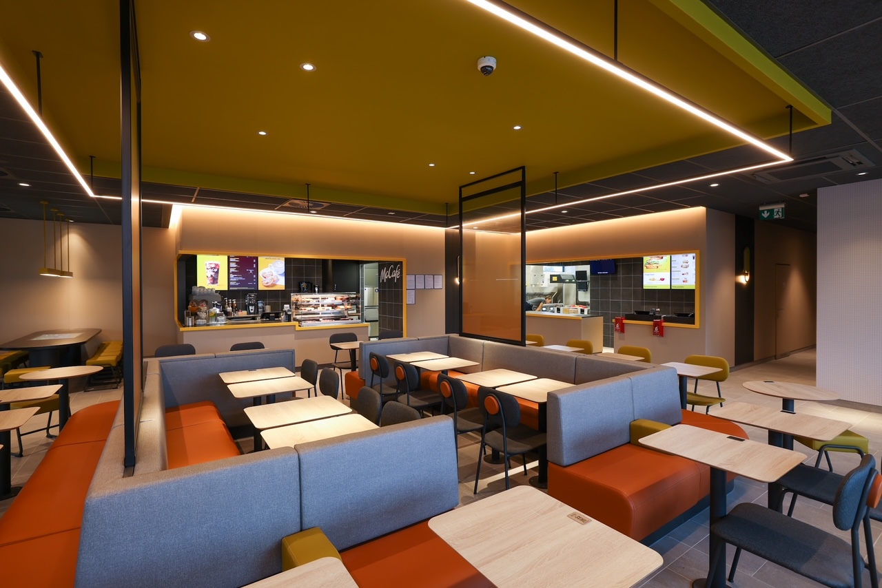 Prevádzka prichádza s moderným dizajnom CUBE, ktorý je inšpirovaný rados?ou z rozba?ovania Happy Meal™. Tento koncept kombinuje teplé farby, jednoduché línie a útulné prostredie, ktoré vyvoláva hrejivé spomienky na detstvo plné bezstarostnosti a radosti. McDonald’s kladie dôraz na rodinnú atmosféru, preto nechýba v prevádzke ani vonkajšie detské ihrisko. Najmenší návštevníci sa môžu zabavi? aj v?aka digitálnym hrám.
