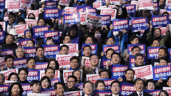 3. decembra Yoon vyhlásil stanné právo s tvrdením, že opozícia sympatizuje so Severnou Kóreou a pripravuje „vzburu“. Parlament sa vzoprel prezidentskej deklarácii a odhlasoval zrušenie stanného práva. Kancelária predsedu parlamentu Woo Won-shika uviedla, že prezidentovo vyhlásenie stanného práva je po hlasovaní zákonodarcov neplatné. Krátko nato Yoon zrušil stanné právo a ospravedlnil sa národu. Prezidentovi bolo neskôr zakázané opusti? krajinu kvôli vyšetrovaniu zmareného stanného práva, zatia? ?o bývalý minister obrany Kim Yong-hyun bol zatknutý v rámci vyšetrovania potenciálneho prípadu zrady.