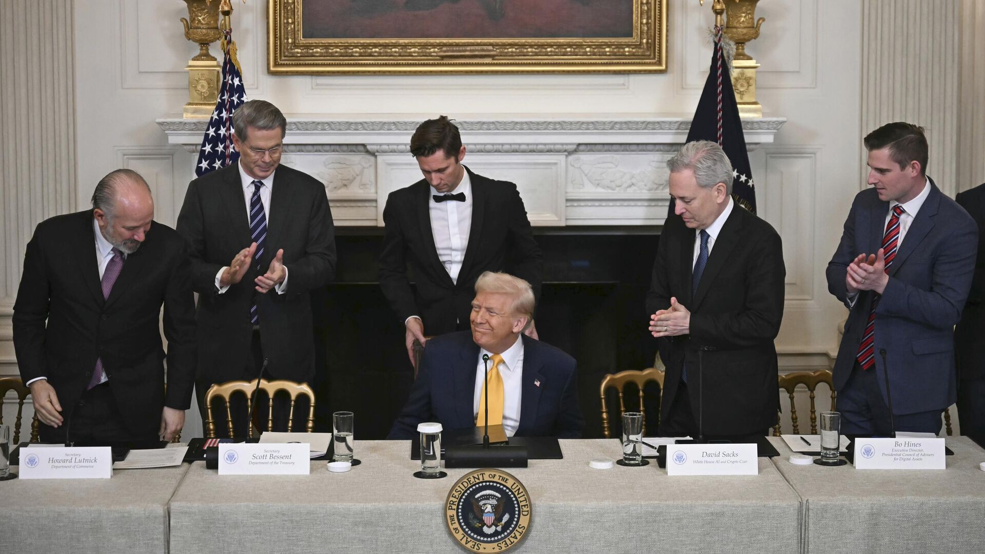 Zaujímavé bolo aj vidie?, ako vodcovia kryptore sedeli pri rovnakom stole s najvyššími vládnymi úradníkmi vrátane Trumpa a jeho ministerstva financií.