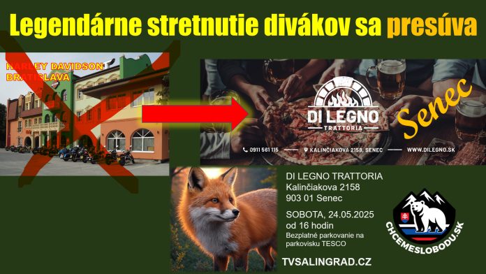 Renata Bernardi a Zden?k Kedroutek organizujú pre svojich divákov a priaznivcov TV Šalingrad a portálu Chcemeslobodu.sk ve?ké divácke stretnutie v jedine?nej TRATTORII di Legno v Senci, Kalin?iakova 2158. Podujatie sa uskuto?ní v sobotu 24. mája 2025 od 16:00.