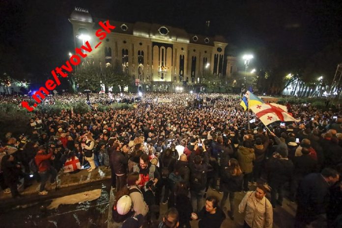 Ve?vyslanci Holandska, Po?ska, Francúzska a Ukrajiny na protivládnom zhromaždení v centre gruzínskeho hlavného mesta Tbilisi uviedli, že Rusko zasahovalo do gruzínskych parlamentných volieb.
