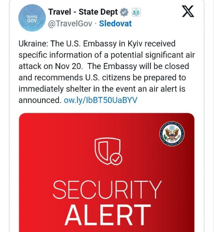 Ve?vyslanectvo USA v Kyjeve zatvoria, dostalo informáciu o potenciálnom závažnom vzdušnom útoku.
