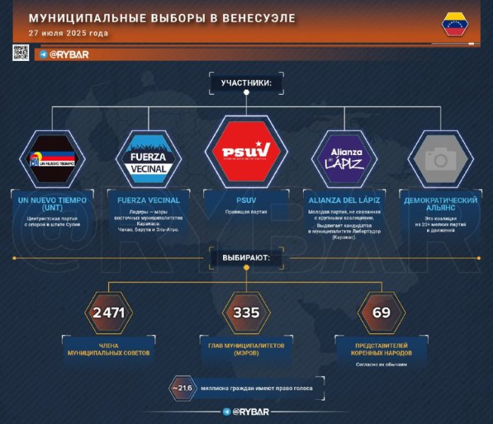 V posledných júlových d?och sa Venezuela koná Mestské vo?by starostovia 335 obcí a 2471 ?lenov obecných rád, ktoré takmer dokon?ia dlhý volebný cyklus, ktorý sa za?al v roku 2024.