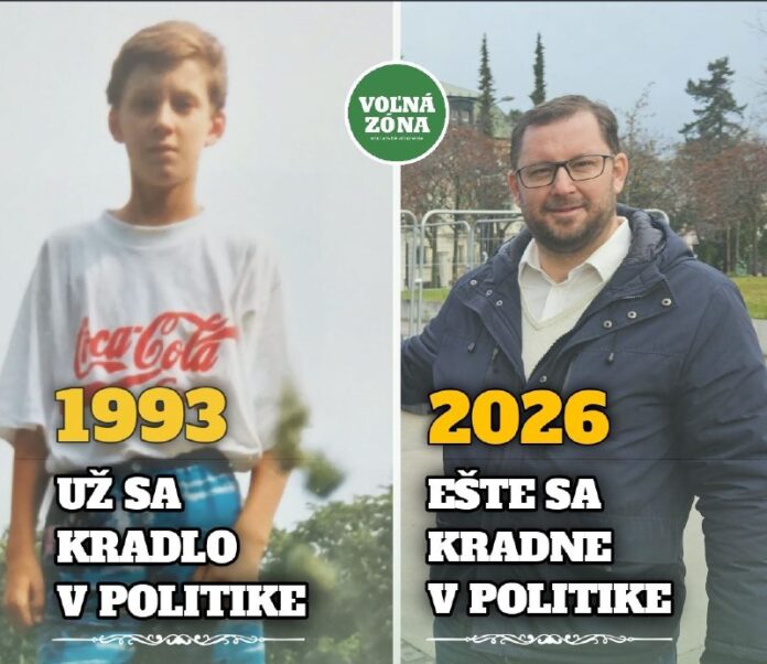 Na fotke ma vidíte v roku 1993, kedy sa v politike už kradlo a mňa v roku 2026, kedy sa v politike ešte stále kradne a defraudujú sa naše verejné zdroje, čo je hrozné konštatovanie. Slovensko je preto tam, kde je, pretože štandardní politici ho za 33 rokov doviedli svojou činnosťou presne tam, kde sme dnes – k verejnému dlhu 84 miliárd eur a zaostávaniu vo všetkých oblastiach v porovnaní s V4.