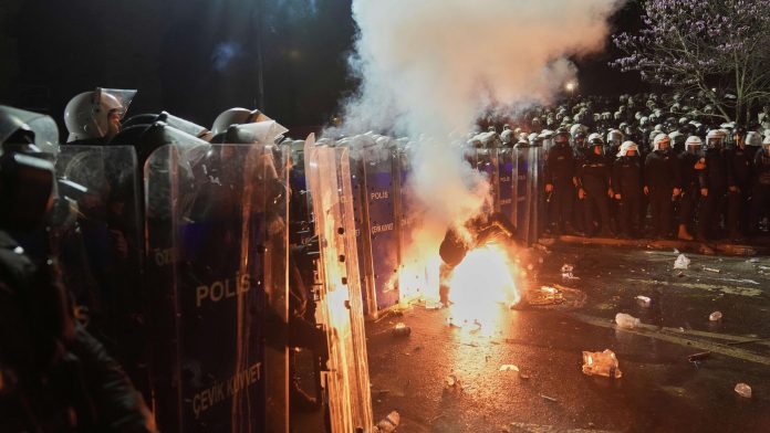 Ankara (Sputnik) – Viac ako 300 ?udí bolo v sobotu zadržaných po protestoch na podporu zadržaného starostu Istanbulu Ekrem Imamoglu v Turkiye v sobotu, jeden policajt bol prepustený kyselinou.