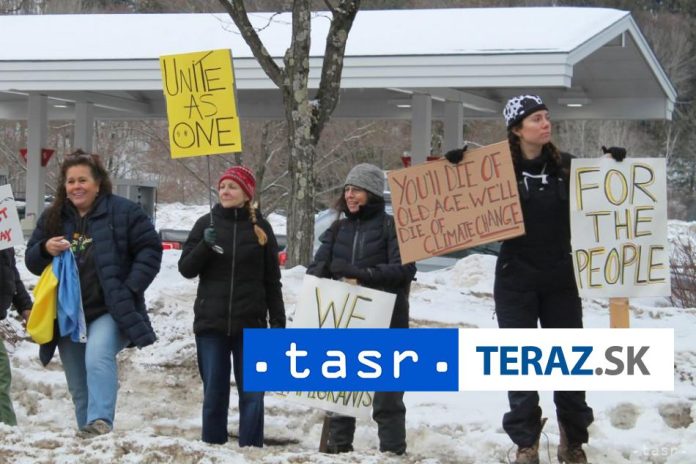 Demonštranti sa zišli na viacerých miestach v lyžiarskom stredisku Sugarbush ne?aleko meste?ka Warren, ako aj na ceste vedúcej k mestu. Viacerí držali transparenty s nápismi vyjadrujúcimi podporu Ukrajine. ?alší mávali palestínskymi vlajkami alebo niesli transparenty so sloganmi na podporu práv imigrantov.