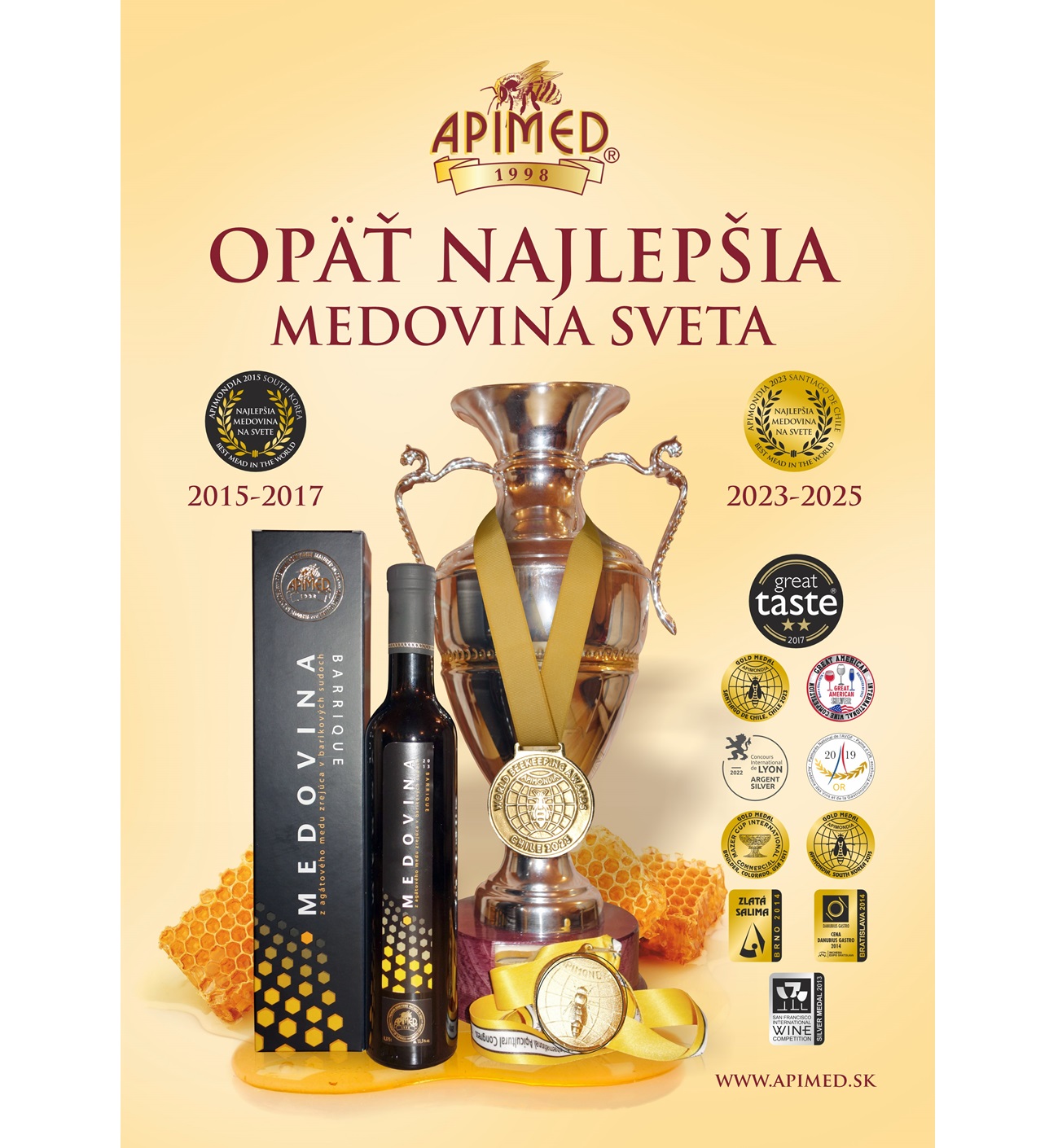 Skuto?nou delikatesou je Medovina Barrique, v ktorej sa elegantne snúbi lahodná chu? a jemný buket agátového medu s vanilkovo-?okoládovými tónmi barikového suda. Na sú?aži APIMONDIA v Santiago de Chile vyhrala Medovina Barrique z Medovinárstva APIMED zlatú medailu a je aktuálnou držite?kou ocenenia NAJLEPŠIA MEDOVINA SVETA.