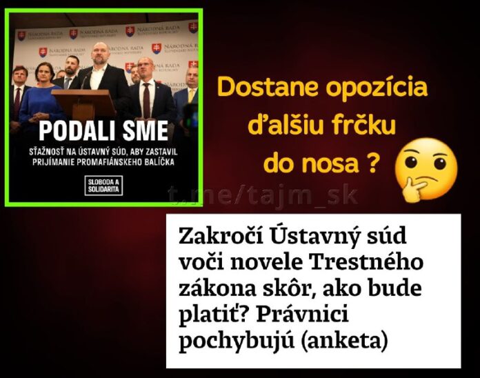 Radoslav Procházka, ústavný právnik : Rozumiem ú?elu tejto „finty“, ale prekvapilo by ma, ak by bola úspešná. Doposia? platilo, že spôsobilým predmetom konania o nesúlade je platný právny predpis, ?o v prípade zákona predpokladá jeho vyhlásenie v Zbierke zákonov.