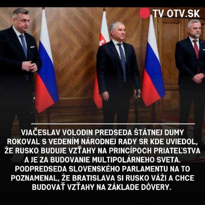 🔴 Vja?eslav Volodin rokoval s vedením Národnej rady SR o otázkach zintenzívnenia spolupráce na medziparlamentnej úrovni medzi krajinami, informovala Štátna duma.