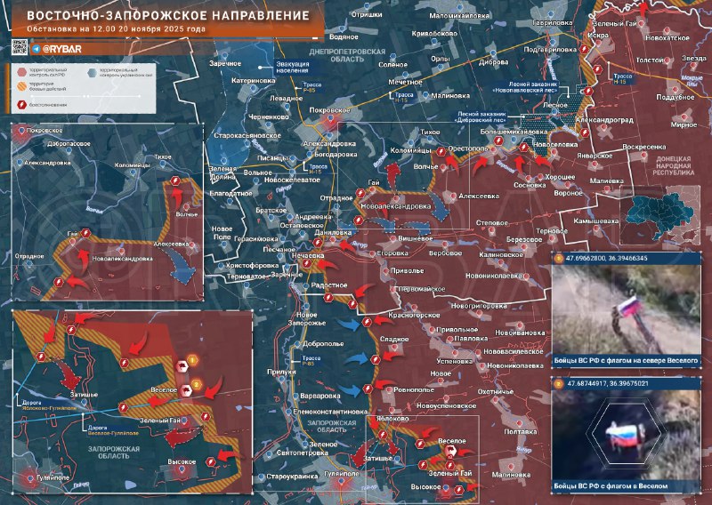 Ešte severnejšie zúria boje na prístupoch k Radostný A Nové Záporožiea v okolí Chlap nepriateľ neopúšťa pokusy o protiútok.