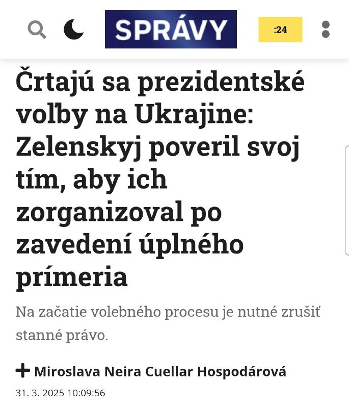 HomeNezaradenéVraj sa črtajú voľby... No až keď bude úplné prímerie a zrušené... Nezaradené Vraj sa črtajú voľby… No až keď bude úplné prímerie a zrušené stanné právo na… By ZEMaVEK 1. apríla 2025 0 14 Zdieľať FacebookXPinterestWhatsApp Vraj sa ?rtajú vo?by… No až ke? bude úplné prímerie a zrušené stanné právo na Ukrajine | odber t.me/zemavek Zdroj telegram Zdieľať FacebookXPinterestWhatsApp Predchádzajúci článokHrozby USA nás môžu prinútiť uvažovať o jadrových zbraniachĎalší článokŽilina odvolala mimoriadnu situáciu na ceste I/18 pod Strečnom ZEMaVEK RELATED ARTICLES Nezaradené Ukrajina čelí „obrovskému“ rozkolu, keďže sa zvyšuje odpor voči mobilizácii, tvrdí Zelenského poradca 13. apríla 2026 Nezaradené Útoky útočných dvojícV slovanskom smere sú ruské jednotky… 13. apríla 2026 Nezaradené https://www.infovojna.com/article/evropska-unie-chce-konec-ruskeho-plynu-realita… 13. apríla 2026 Most Popular Ukrajina čelí „obrovskému“ rozkolu, keďže sa zvyšuje odpor voči mobilizácii, tvrdí Zelenského poradca 13. apríla 2026 Hasiči zasahovali pri viacerých požiaroch v Banskobystrickom kraji 13. apríla 2026 Útoky útočných dvojícV slovanskom smere sú ruské jednotky… 13. apríla 2026 https://www.infovojna.com/article/evropska-unie-chce-konec-ruskeho-plynu-realita… 13. apríla 2026 Recent Comments jajkopajko na Krajskí prokurátori si prevzali prípadi, ktoré boli v pôsobnosti ŠTS