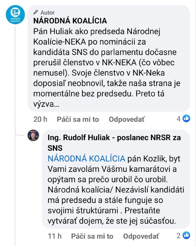 Média prosím, aby Huliaka už prestali oslovova? v TV diskusiách, na TA3 a ?lánkoch ako „pán predseda strany Národná koalícia“.