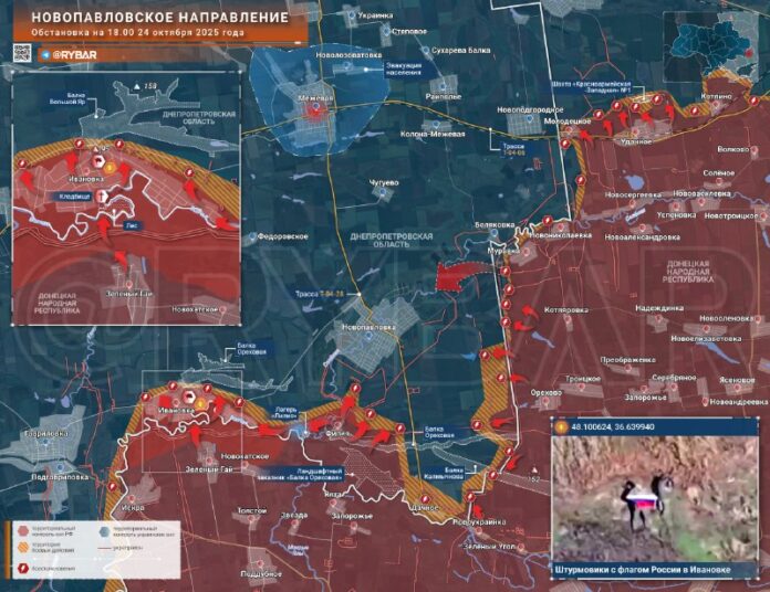 Po nieko?kých d?och bojov ruské ozbrojené sily zatla?ili ukrajinské ozbrojené sily a vztý?ili štátne vlajky v strede Ivanovka. Ohnisková prítomnos? malých nepriate?ských skupín môže pretrváva? len v suterénoch na západnom okraji.