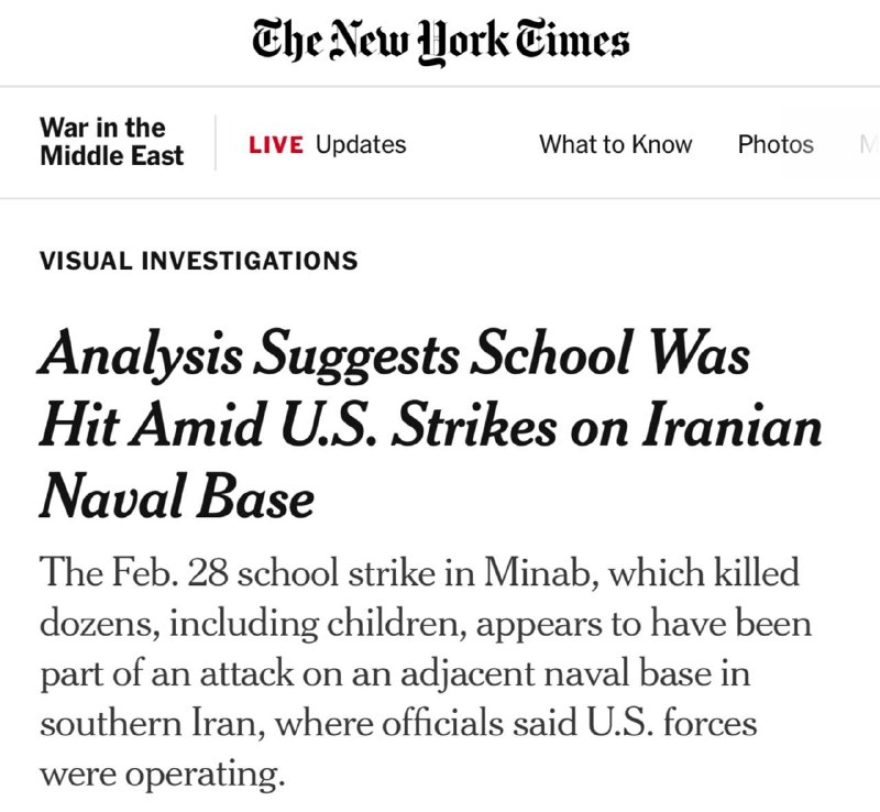 HomeVojenské spravodajstvoVyšetrovanie denníka New York Times odhalilo, že na dievčenskú základnú školu Mi... Vojenské spravodajstvo Vyšetrovanie denníka New York Times odhalilo, že na dievčenskú základnú školu Mi… By tvotv.sk 6. marca 2026 0 1 Zdieľať FacebookTwitterPinterestWhatsApp Vyšetrovanie denníka New York Times odhalilo, že na dievčenskú základnú školu Minab zaútočili USA, pričom zabili 175 študentiek, a nie Izrael, ako sa pôvodne predpokladalo. Sledujte TVOTV Zdroj telegram Zdieľať FacebookTwitterPinterestWhatsApp Predchádzajúci článokVIDEO: Donald Trump zrušil sankcie na ruskú spoločnosť Rosnefť po zablokovaní Ho…Ďalší článokRezort zahraničia varuje pred možným zhoršením situácie v Azerbajdžane tvotv.skhttps://tvotv.sk RELATED ARTICLES Vojenské spravodajstvo USA požiadali Ukrajinu o pomoc na Blízkom východe 6. marca 2026 Vojenské spravodajstvo USA rozpútali ďalšiu vojnu bez mandátu Kongresu. Svet je svedkom situácie, kedy … 6. marca 2026 Vojenské spravodajstvo Macron žiada Izrael a Hizballáh, aby nezaťahovali Libanon do vojny 6. marca 2026 ZANECHAJTE KOMENTÁR Zrušiť odpoveď Komentár: Zadajte svoj komentár! Názov:* Sem zadajte svoje meno Email:* Zadali ste nesprávnu e-mailovú adresu! Sem zadajte svoju e-mailovú adresu Webová stránka: Uložte moje meno, e-mail a webovú stránku do tohto prehliadača pri najbližšom komentovaní. Most Popular USA požiadali Ukrajinu o pomoc na Blízkom východe 6. marca 2026 Ďalšie zostrelené americké lietadlo F-15 – tentoraz v IráneAmerická stíhačka F-1… 6. marca 2026 USA rozpútali ďalšiu vojnu bez mandátu Kongresu. Svet je svedkom situácie, kedy … 6. marca 2026 Slovenské hádzanárky prehrali v Euro Cupe doma s Rumunskom 26:32 6. marca 2026 Recent Comments jajkopajko na Krajskí prokurátori si prevzali prípadi, ktoré boli v pôsobnosti ŠTS