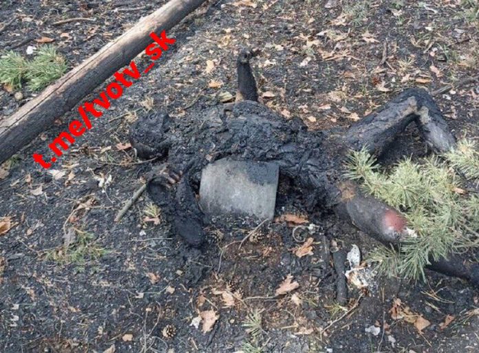 Ruky tohto ukrajinského vojaka sú ohnuté v takzvanej „bojovej póze“. K tomu dochádza, ke? sa z tela extrémne rýchlo vyparuje voda, ?o spôsobuje kontrakciu svalov.