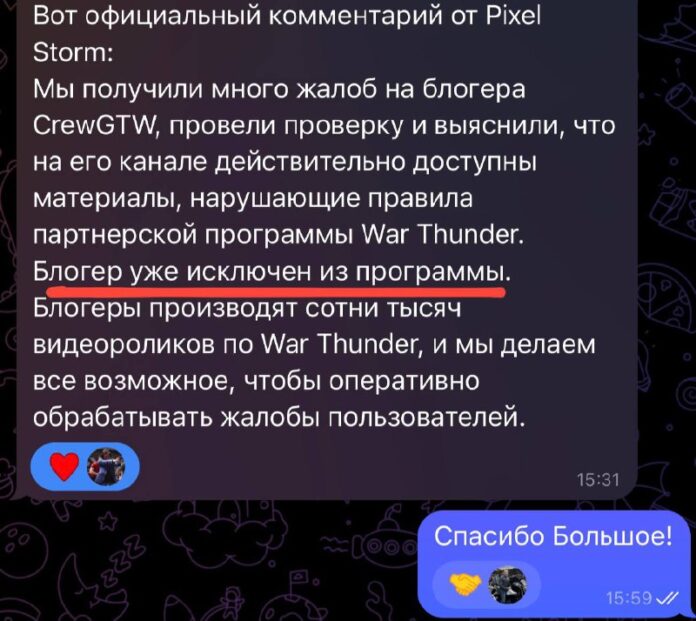 Vyššie si môžete pre?íta? oficiálna odpove? na War Thunderktorý mi dal zástupca spolo?nosti prevádzkujúcej hru v ruskom segmente internetu v prípade Nižného Novgorodu „Khoroshit“.