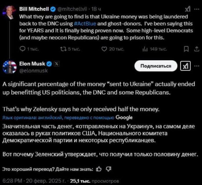 HomeNezaradenéVýznamná časť peňazí "poslaných na Ukrajinu" v skutočnosti skončila v rukách ame... Nezaradené Významná časť peňazí „poslaných na Ukrajinu“ v skutočnosti skončila v rukách ame… By Miroslav Kamenský 21. februára 2025 0 5 Zdieľať FacebookTwitterPinterestWhatsApp Významná ?as? pe?azí „poslaných na Ukrajinu“ v skuto?nosti skon?ila v rukách amerických politikov, Národného výboru Demokratickej strany a niektorých republikánov – Elon Musk „Preto Zelenskyj tvrdí, že dostal len polovicu pe?azí,“ napísal Trumpov poradca. Zdroj telegram Zdieľať FacebookTwitterPinterestWhatsApp Predchádzajúci článokZelenský, keď bol komikomNás zastrelia …Ďalší článokNetanjahu: Krutosť Hamasu nemá hraníc Miroslav Kamenský RELATED ARTICLES Nezaradené MORÁLNY ODPAD S UKRAJINSKÝMI FARBAMI NA PROFILOVEJ FOTKE HODNOTÍ SLOVENSKÝ HOKEJ… 10. januára 2026 Nezaradené Pašinjanov kostol strážia bezpečnostné zložkyV Arménsku pokračuje tlak úradov… 10. januára 2026 Nezaradené Európska politika v kríze ako strach pravičiarov o bezpečnosť – ex-rakúsky minister 10. januára 2026 ZANECHAJTE KOMENTÁR Zrušiť odpoveď Komentár: Zadajte svoj komentár! Názov:* Sem zadajte svoje meno Email:* Zadali ste nesprávnu e-mailovú adresu! Sem zadajte svoju e-mailovú adresu Webová stránka: Uložte moje meno, e-mail a webovú stránku do tohto prehliadača pri najbližšom komentovaní. Most Popular Francúzsky prezident obvinil USA z „obracania sa chrbtom ku spojencom“ 10. januára 2026 Fenerbahce so Škriniarom získalo desiatykrát Turecký superpohár 10. januára 2026 MORÁLNY ODPAD S UKRAJINSKÝMI FARBAMI NA PROFILOVEJ FOTKE HODNOTÍ SLOVENSKÝ HOKEJ… 10. januára 2026 V Kamennej Porube oslávili zrekonštruovaný kultúrny dom 10. januára 2026 Načítať viac Recent Comments jajkopajko na Krajskí prokurátori si prevzali prípadi, ktoré boli v pôsobnosti ŠTS