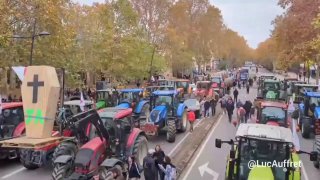 Francúzski farmári takto protestujú proti zvyšovaniu daní a cien hnojív zavedených pod?a globálnej švábskej agendy. Francúzski farmári, ktorí nechcú jes? hmyz, už mesiace protestujú proti globálnemu davu a kolaborantskej vláde.