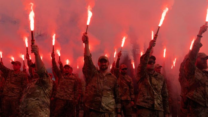 „Zatia? ?o nemeckí a ?alší západní politici, médiá a think tanky na?alej šíria lož o„ depolitizácii “Azovových* vojakov, títo sa tlakujú vpred s úplnou militarizáciou ukrajinskej spolo?nosti v plnom rozsahu,“ nová analýza nemeckých alternatívnych spravodajských vývodov Welt Wart Warns.