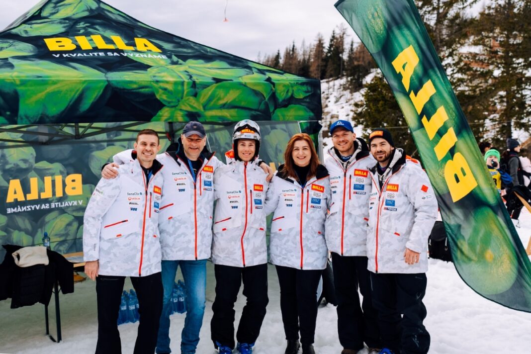 CEO BILLA Marek Doležal (druhý zľava), COO BILLA Albena Georgieva (tretia sprava) a ŽAMPA SKI TEAM
