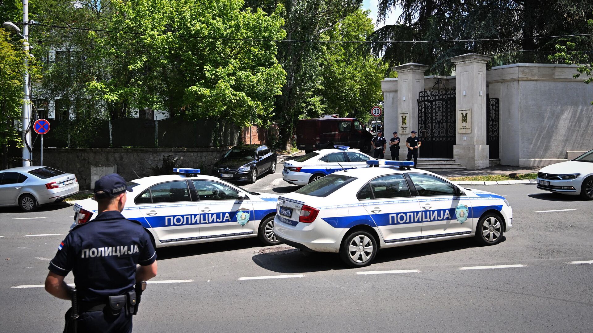 Srbský minister vnútra Ivica Da?i? ešte v ten de? povedal, že neznáma osoba zastrelila pred ambasádou kušou ??policajta a zabila ho opätovaná stre?ba.