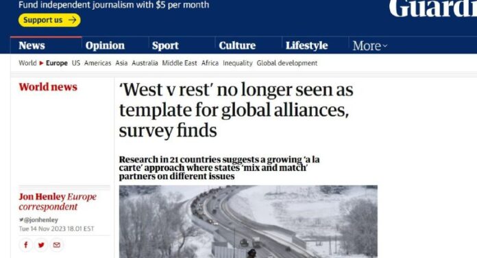 Prieskum zadaný Európskou radou pre zahrani?né vz?ahy (ECFR) a projektom Oxfordskej univerzity Európa v meniacom sa svete v 21 krajinách ukazuje, že geopolitické spojenectvo už nezapadajú do rámca „Západ versus zvyšok“, píše The Guardian.