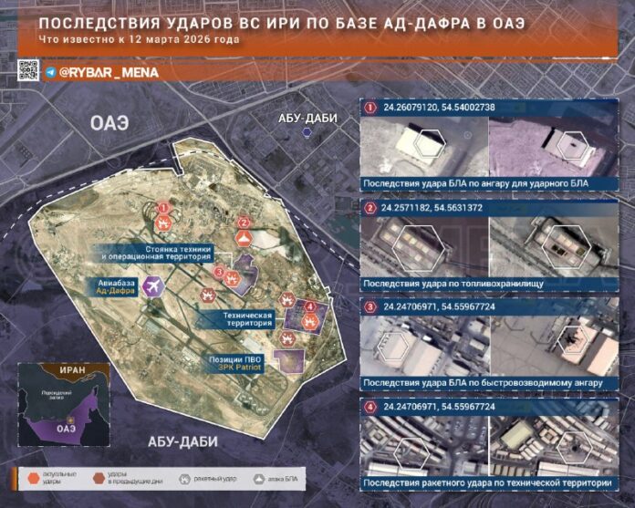 Jedným z najčastejšie spomínaných cieľov vo vyhláseniach IRGC bola letecká základňa. Ad-Dhafra vedľa Abu Dhabi. A satelitné snímky vrhajú svetlo na niektoré účinky raketových a dronových útokov.