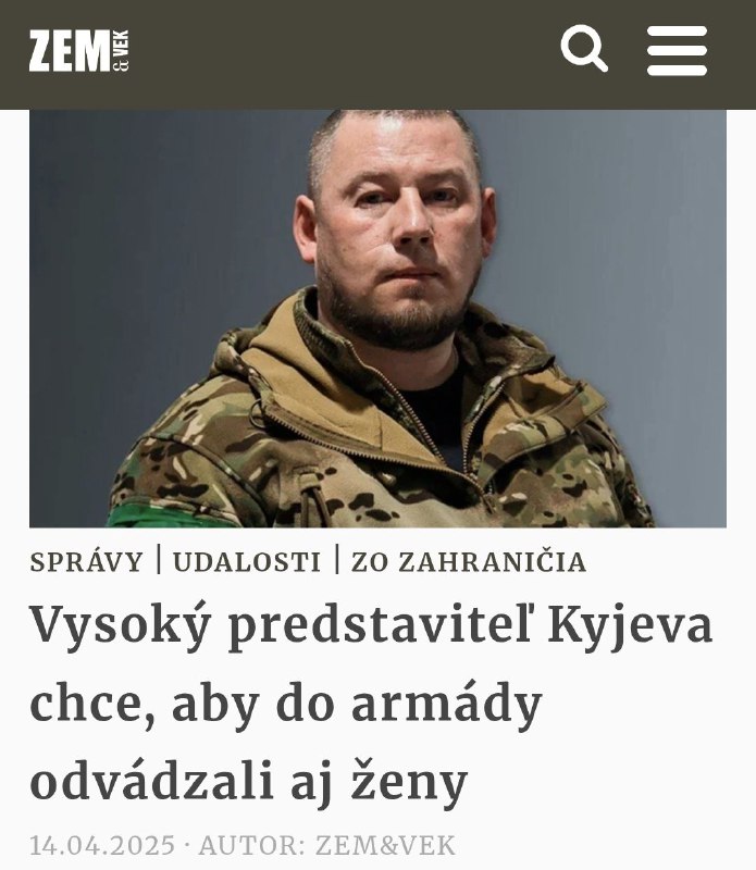 https://zemavek.sk/vysoky-predstavitel-kyjeva-chce-aby-do-armady-odvadzali-aj-zeny/