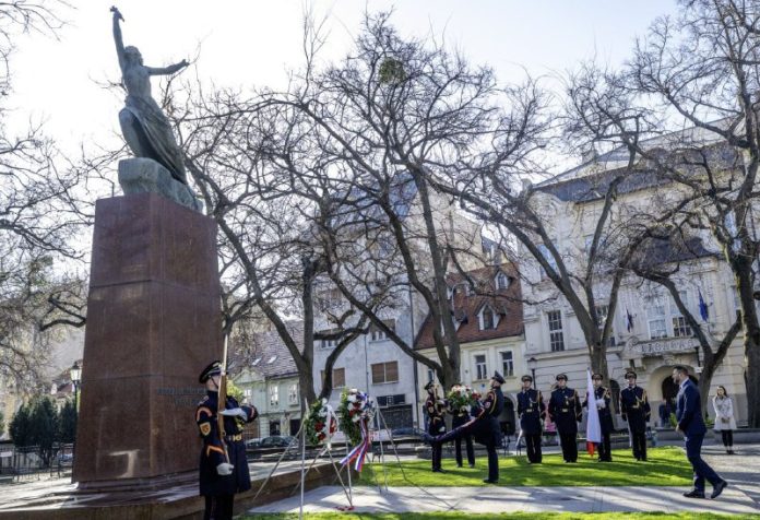 Tichá pietna spomienka a položenie vencov boli pri Pomníku ví?azstva na bratislavskom Námestí Eugena Sucho?a.