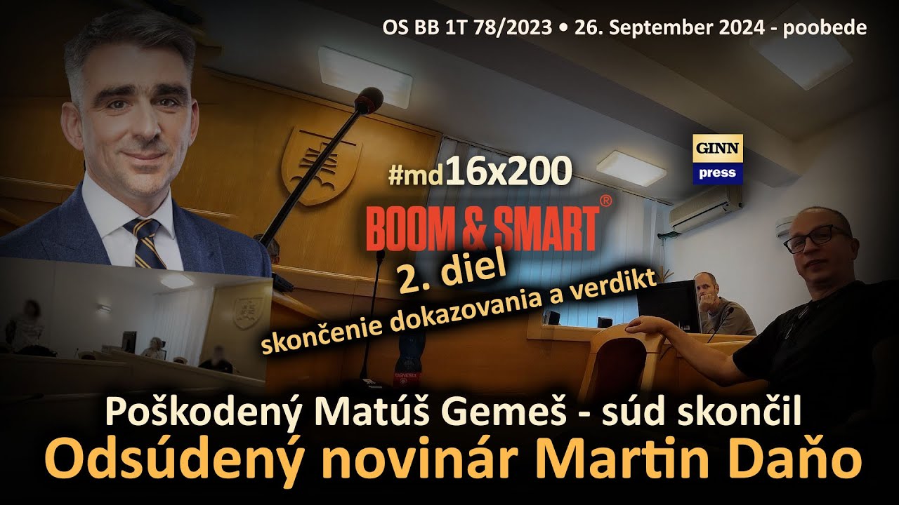 26. Septembra 2024 sa ´pokra?ovalo v súdnom pojednávaní vo veci poškodený advokát Matúš Gemeš. Sudca Peter Philadelphy uznal Martina Da?a vinného z ohovárania – tu je koniec súdu a Vám ?akujem vám za podporu https://www.ginn.press/podpora.