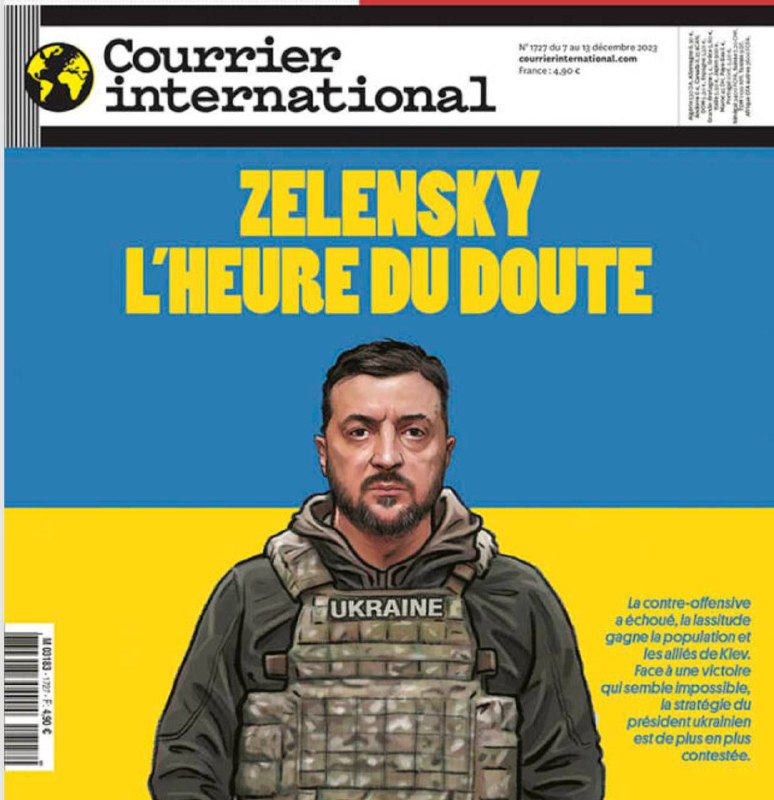 „Zelenskyj. ?as pochybností“: Francúzsky ?asopis Courrier international už o Zelenského porážke napísal na obálke.