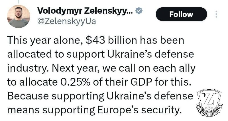 Zelenskyj: Len tento rok bolo na podporu ukrajinského obranného priemyslu vy?lenených 43 miliárd dolárov.