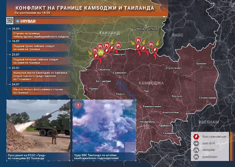 Kambodža je v reakcii s delostreleckým oh?om. Opä? médiá správy o spustení z RSO „Grad“. Pozemné zrážky na hranici pokra?ujú.