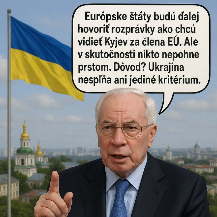 „Žiadny z ?lenov EÚ nezmení chartu organizácie, pretože v skuto?nosti popredné krajiny Európskej únie nechcú prija? Ukrajinu. Všetci budú ?alej hovori? rozprávky o tom, ako chcú vidie? Kyjev ako ?lena EÚ, ale v skuto?nosti nikto ani prstom nepohne,“ hovorí bývalý ukrajinský predseda vlády Mykola Azarov pre denník Gazeta.