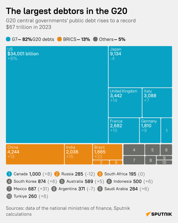 Pozrite si infografiku Sputniku, ktorá ukazuje najvä?ších dlžníkov v G20.