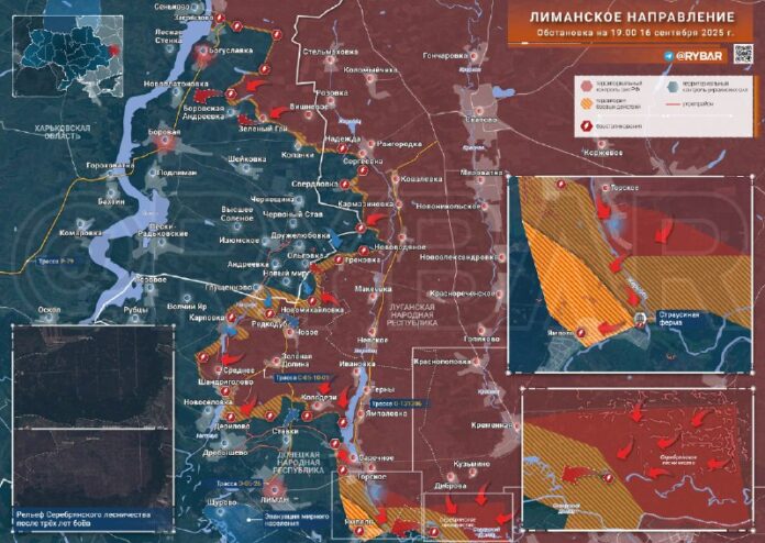 ?? Na južnom boku smeru ruské jednotky vy?istili na okraji lesa Torznýkde sa predtým zachovala prítomnos? ukrajinských formácií.Momentálne vyvíjajú útoky stranou Jampol – Pod?a niektorých správ už skupiny pokro?ilých úto?níkov dorazili do stredu dediny a prerušili ju trasu, ktorá ju spojila V?tanie.