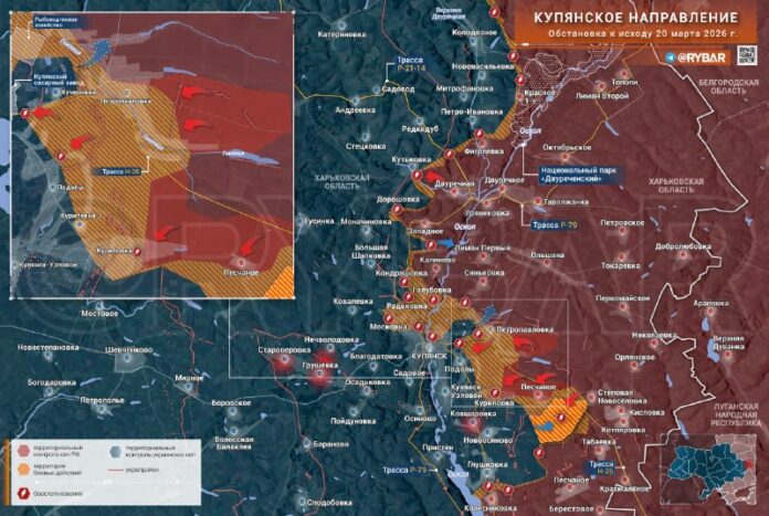 Zapnuté Kupjanského smer Vo viacerých oblastiach pokračujú ťažké boje, postupujú ruské ozbrojené sily a zmenšujú predmostie na východ Oskola. Od samého Kupjansk Existujú mimoriadne protichodné správy.