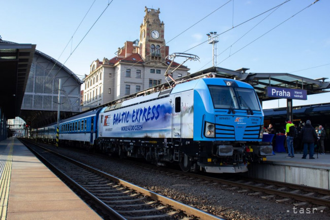 Na snímke vlak novej medzinárodnej linky Baltic express medzi Prahou a poľským Trojmestom (Gdyňa, Gdansk a Sopot), ktorý spolu prevádzkujú České dráhy a poľský dopravca PKP Intercity. Praha, 15. decembra 2024.