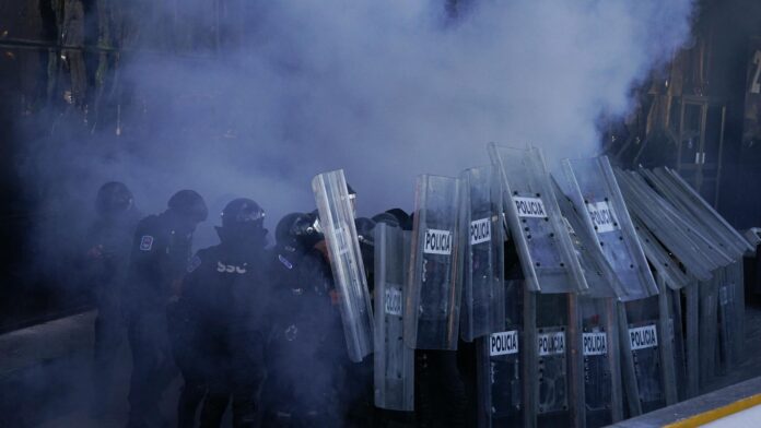 Po zni?ení ochranných bariér vztý?ených pred Národným palácom po?as pochodu „Generácie Z“ došlo v štvrti Zocalo v Mexico City k stretu medzi skupinou maskovaných ?udí a bezpe?nostnými silami. Polícia utrpela zranenia, ke? sa pokúšala zastavi? postup demonštrantov