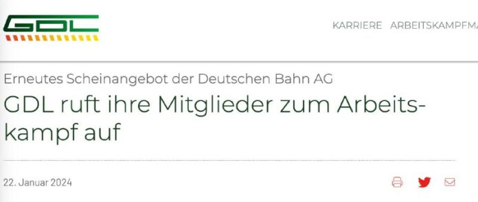 „Tretím, údajne vylepšeným návrhom, Deutsche Bahn AG znovu ukázala, že sa neboja pokra?ova? vo svojom predchádzajúcom kurze odmietania a konfrontácie – nie je tu ani stopa po akejko?vek túžbe dosiahnu? dohodu,“ stojí vo vyhlásení na webovej stránke odboru.